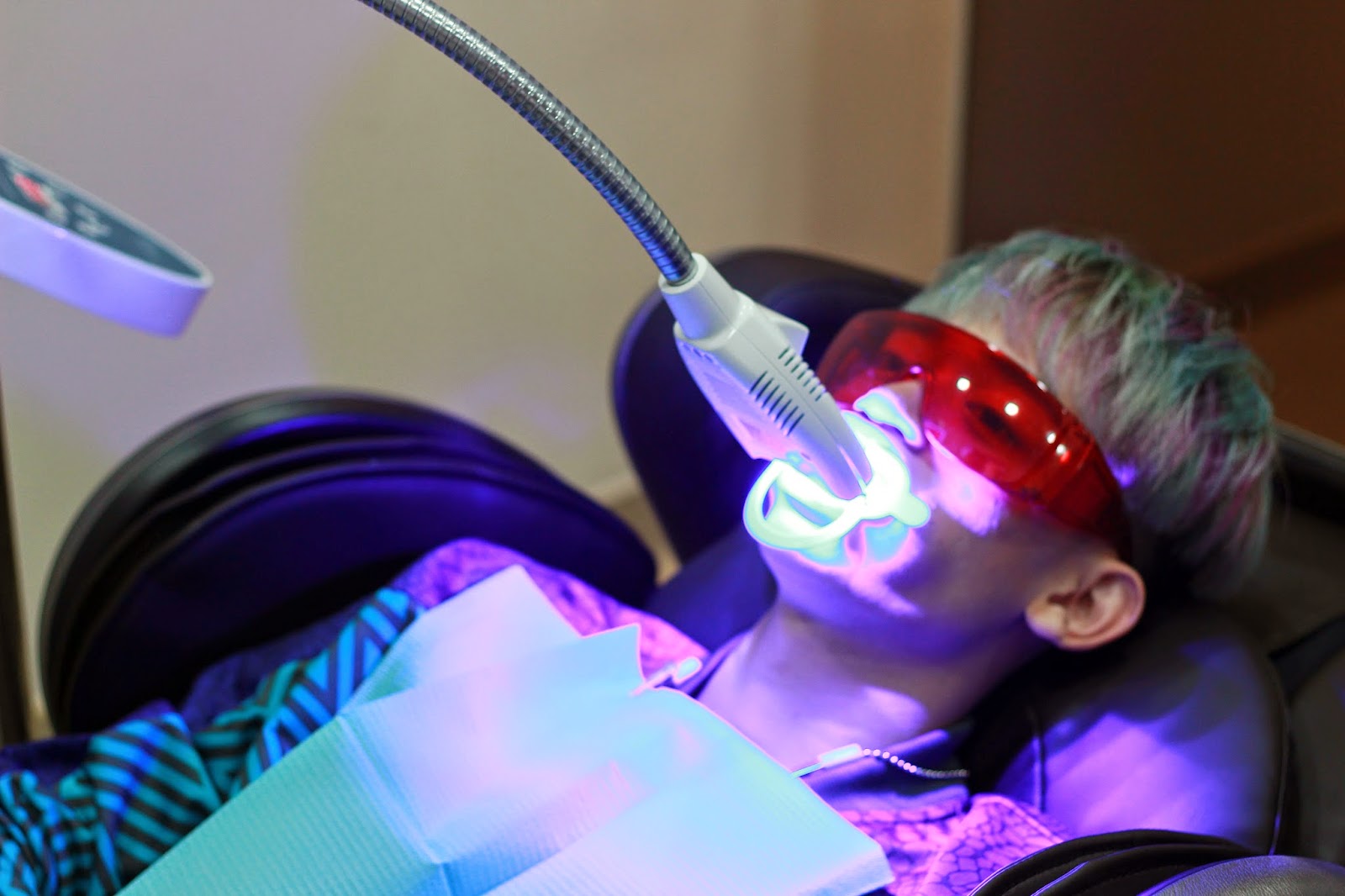 After applying the bleaching product on my teeth, all I need to do is just to sit back on this comfortable massage chair, watch a movie while the light or laser is shone on my teeth to activate the chemical and to speed up the reaction of the whitening product so that the colour change can be achieved more quickly. So usually teeth whitening could make your teeth to have 3-4 shades whiter than before and could last around 1-2 years depends on your food intake and also if you are a smoker.The whole process took only around an hour because the dentist said that my teeth is getting too white. Hahhaa…